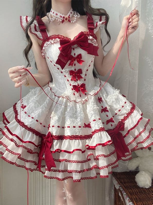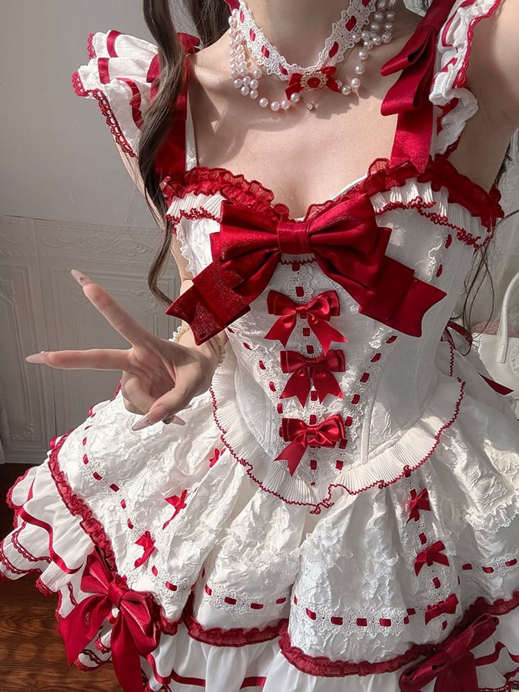Pink and White Old School Lolita Fashion Dress Bowknot Detais Lolita JSK Set
