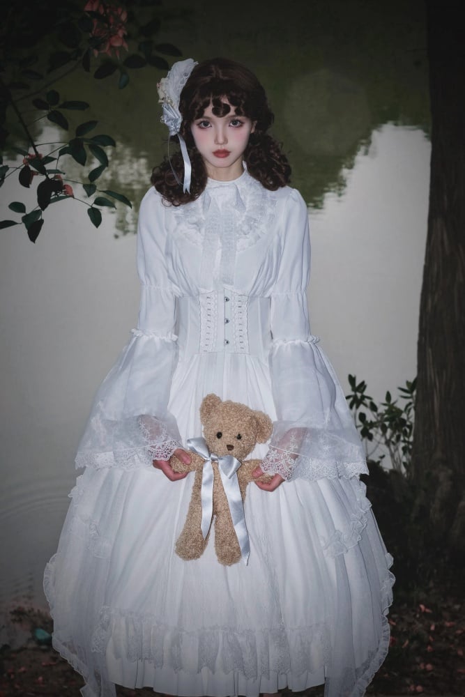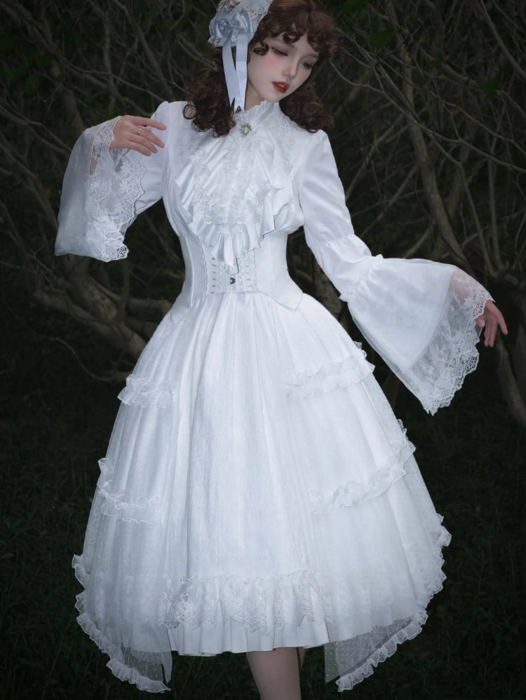 Black and White Old School Lolita Fashion Dress Bowknot Lolita JSK Set