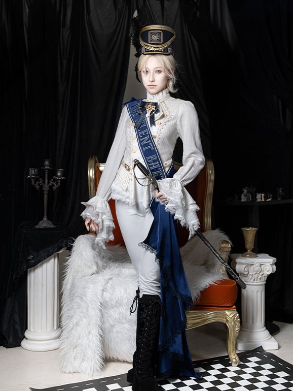 White Jabot Ruffle Neckline Cadcading Ruffle Cuffs Long Sleeves Ouji Lolita Top