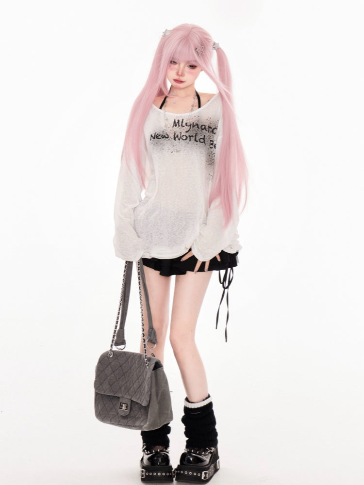 White Letter Print Coverup Semi-sheer Neckline Asymmetrical