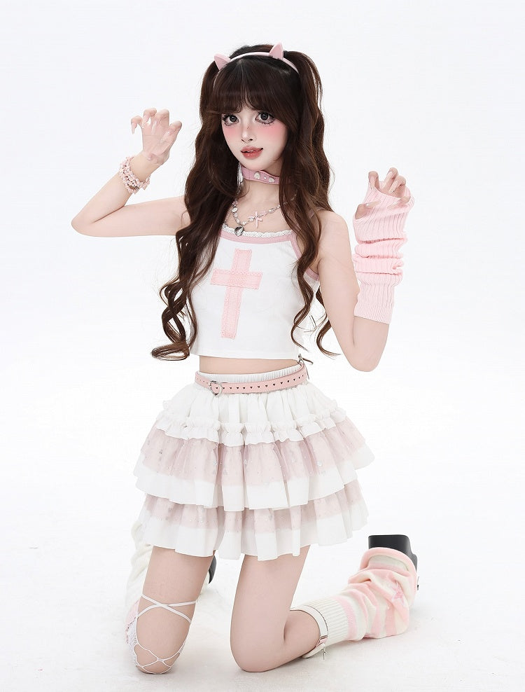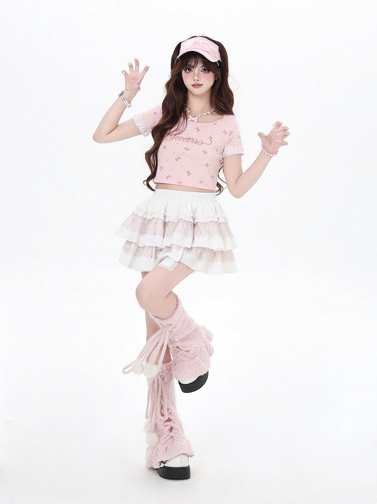 Pink and White Old School Lolita Fashion Dress Bowknot Detais Lolita JSK Set