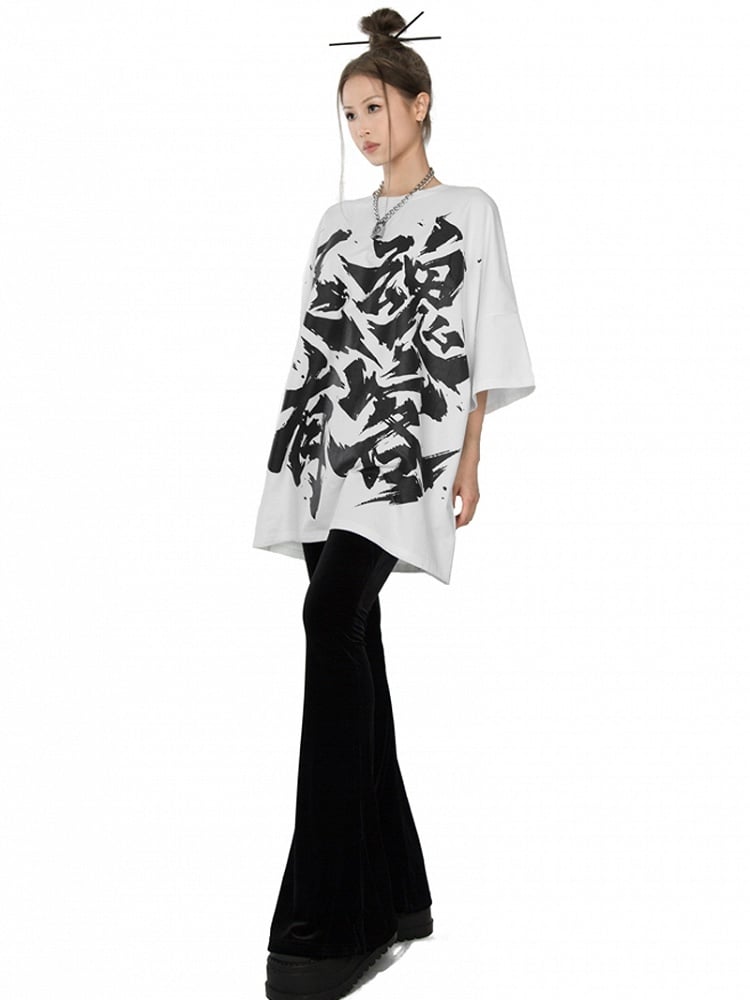 White Unisex T-Shirt Print Graphic Soul with Occupied Oversized