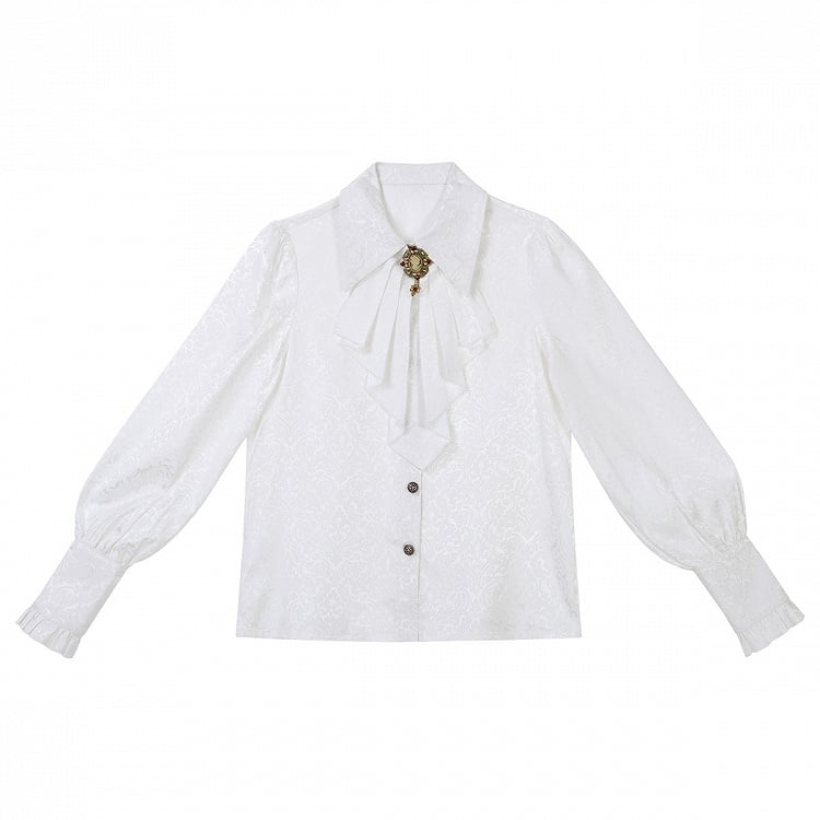 White Ouji Lolita Long Sleeves Shirt + Black High Waist Pants + Cross Charms Red Bat Wings Collar Coat