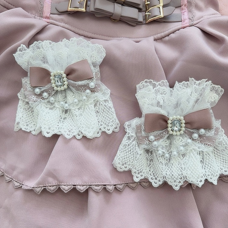 5 Color Options Beaded Charm Rhinestone Decorated Bowknot Lace Wrist Cuffs