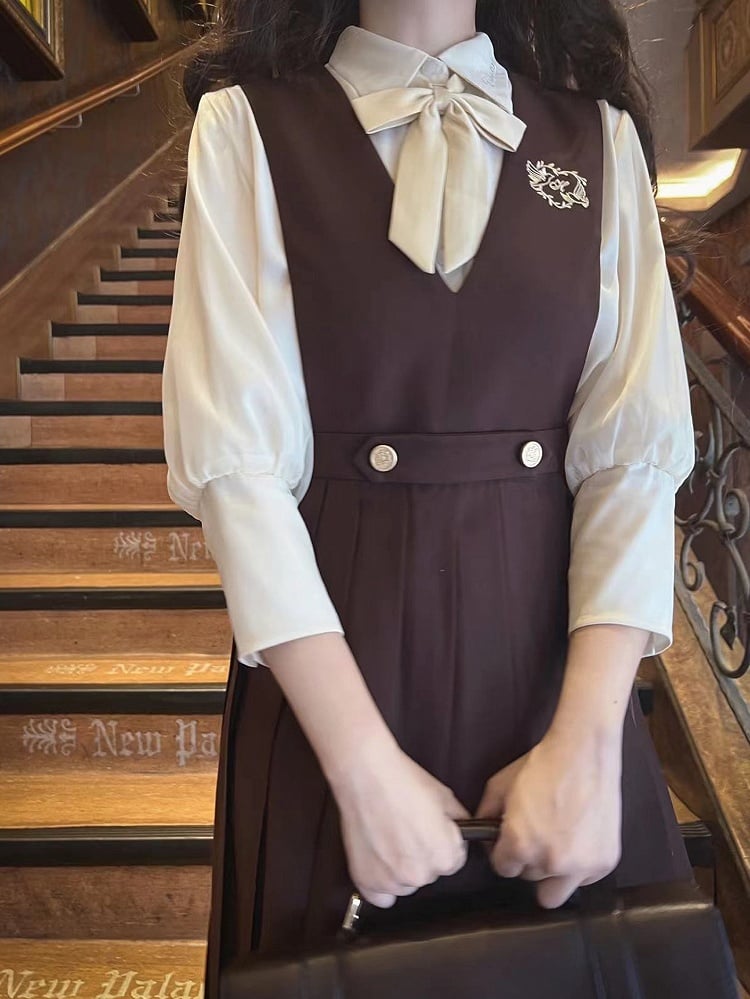 Blue and White Old School Lolita Fashion Dress Bowknot Detais JSK Set